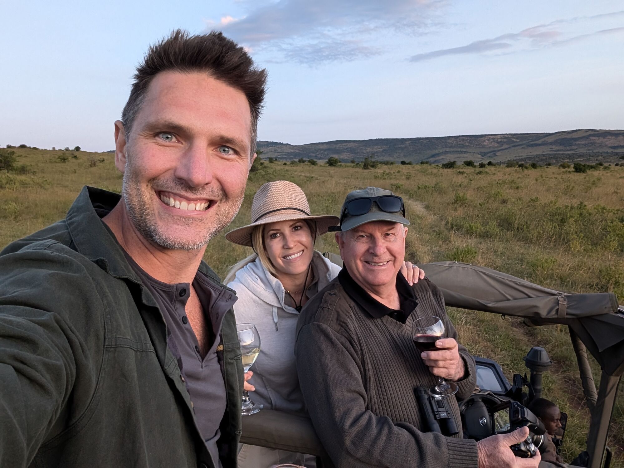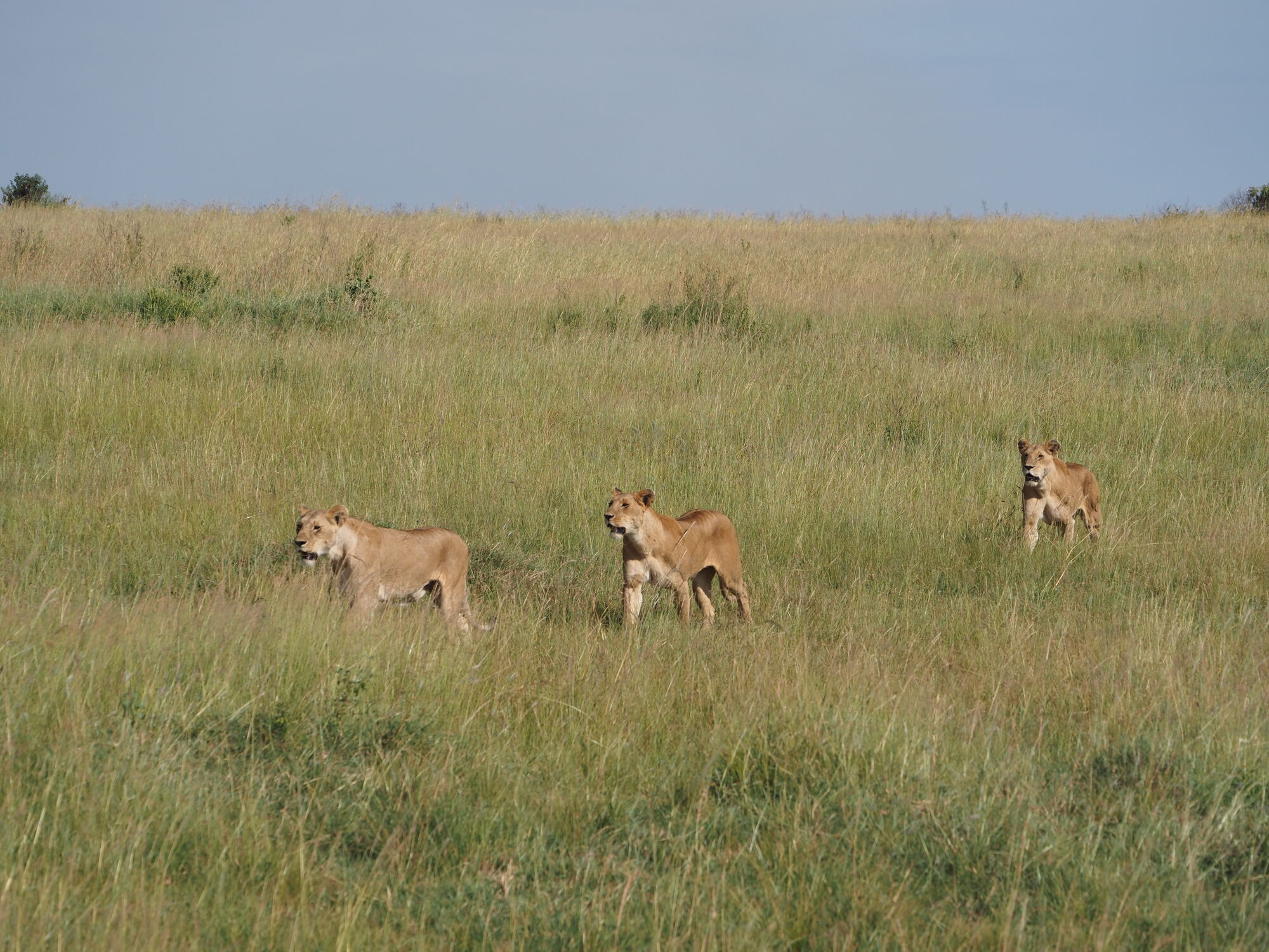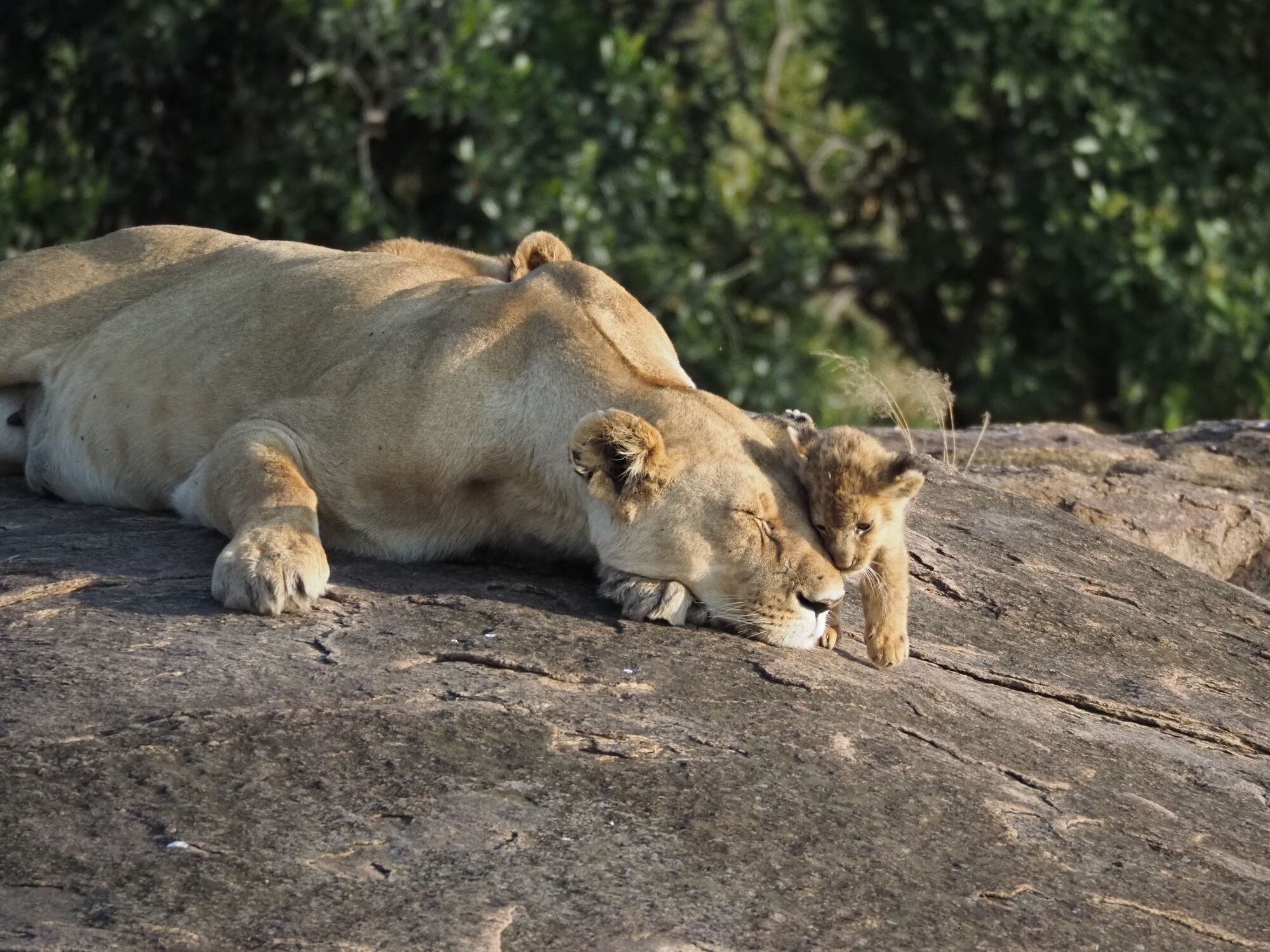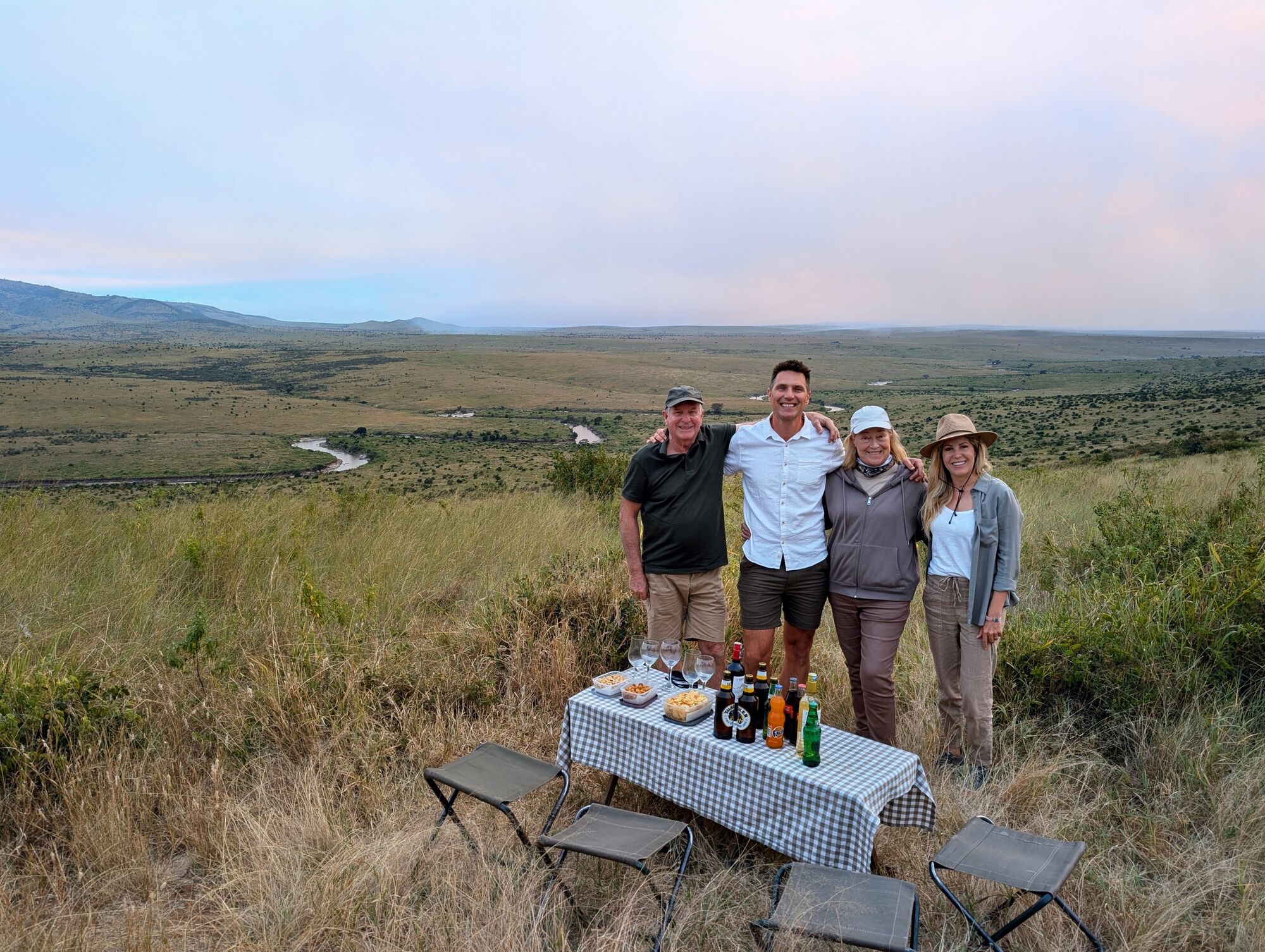 The open grasslands were extraordinarily beautiful. And not at all like the bush that we are used to in South Africa.I adored these morning views and took tons of pictures a lot like this one.These hills are known as the "sleeping warrior". You can see him lying down, with his head on the left.We had tons of excellent lion sightings while in the Mara. Starting with this lazy lot on our first evening.The highlight was this pride, which had set up camp on these rocks with quite a lot of cubs. We'd come by every day.One day we saw the lionesses get up with intent. As always it was extremely exciting to follow them and watch them looking for a meal.They eventually noticed two dagga boys and surrounded them. A quick chase ensued but ended when the lead lioness tripped!Camp life was fantastic. We were very well treated, had excellent meals, and adored the staff.With Janet, our camp host on our way out. They really were special.Life in the bush was also very comfortable. Here another picnic brunch somewhere out in the bush.One of many beautiful spots for a sundowner or a snack.A very special experience was being taken to the home village of our tracker. It was truly amazing to see the life that he had lived, and that his enormous family continues to live.Showing the kids the photo. We also got a tour of one of the huts and shown a bit of how life is lived there..Demonstrations in the village.We loved our time in the Masai Mara, and I really hope to return one day.