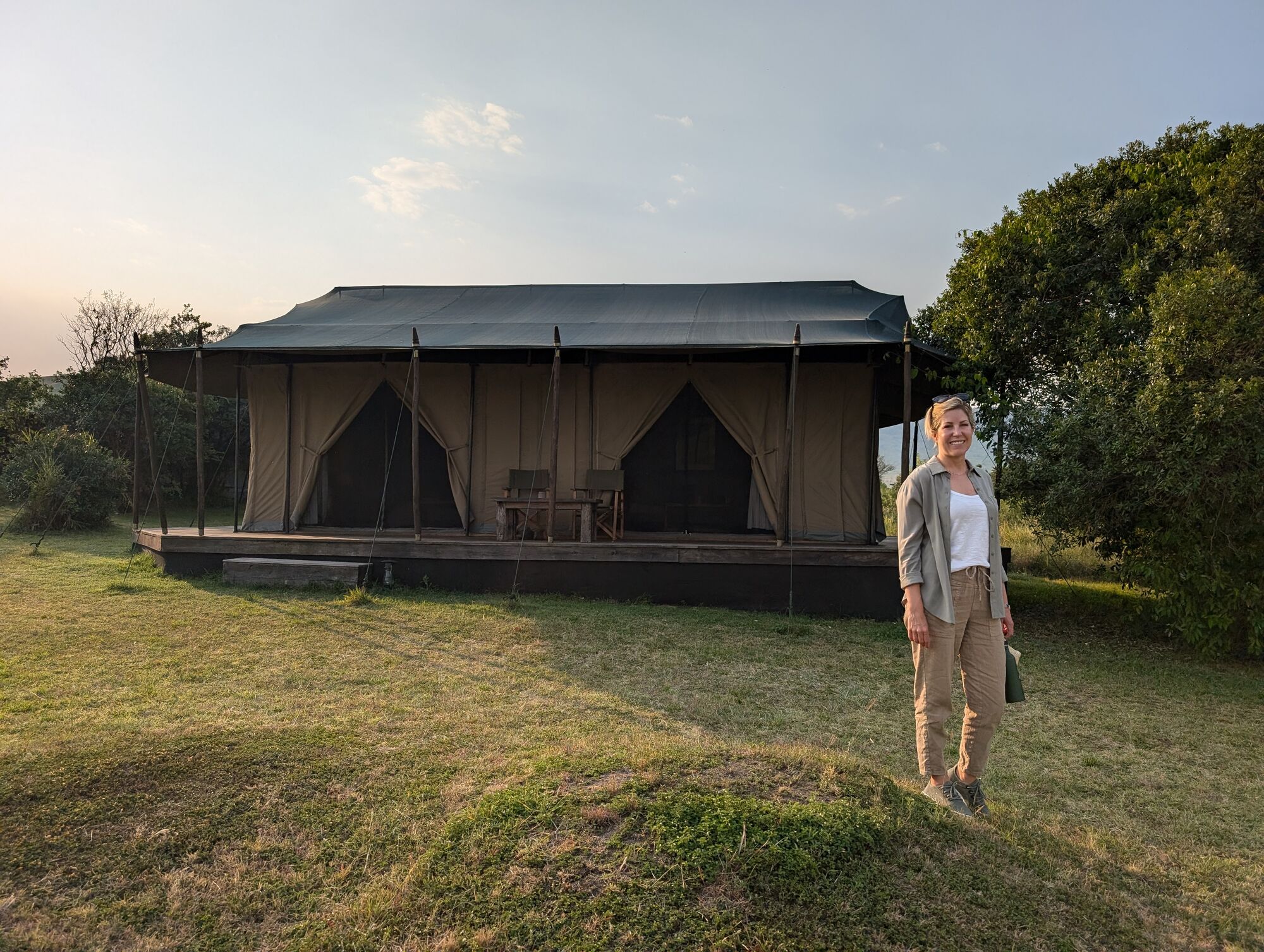 You fly into this dirt strip in these little planes. Pickup is by these Masai guides and in the game vehicle. Right into the vibes.We stayed at the absolutely wonderful Enkewa Camp. These huge, extremely comfortable tents in an entirely unfenced camp were our home.