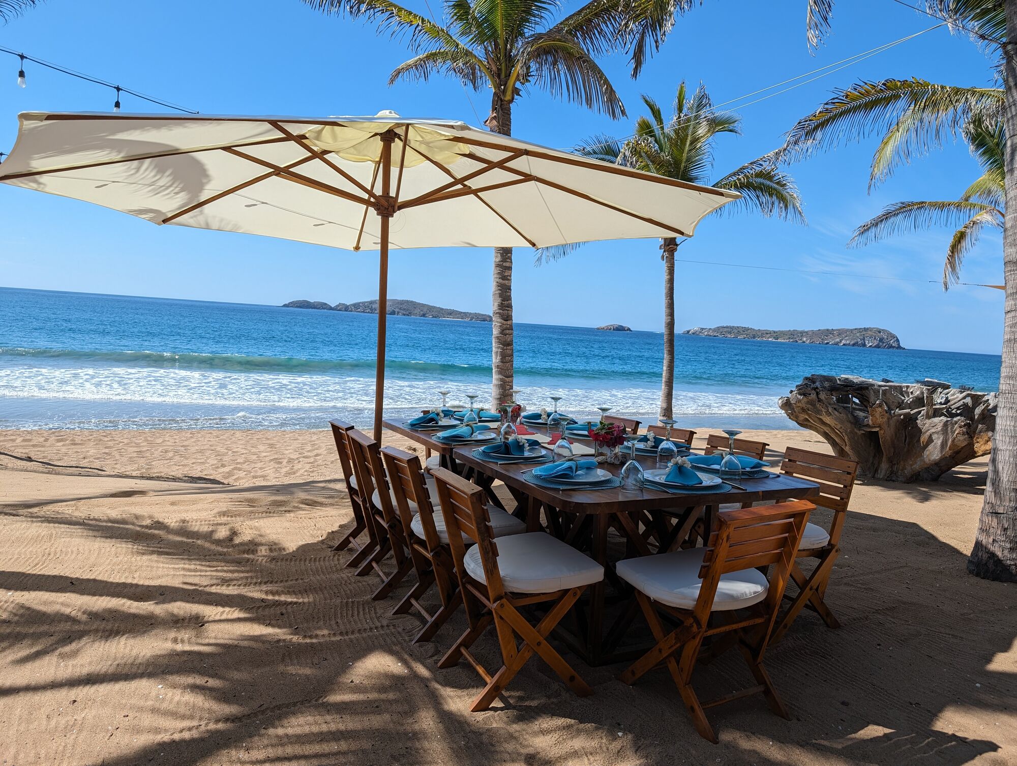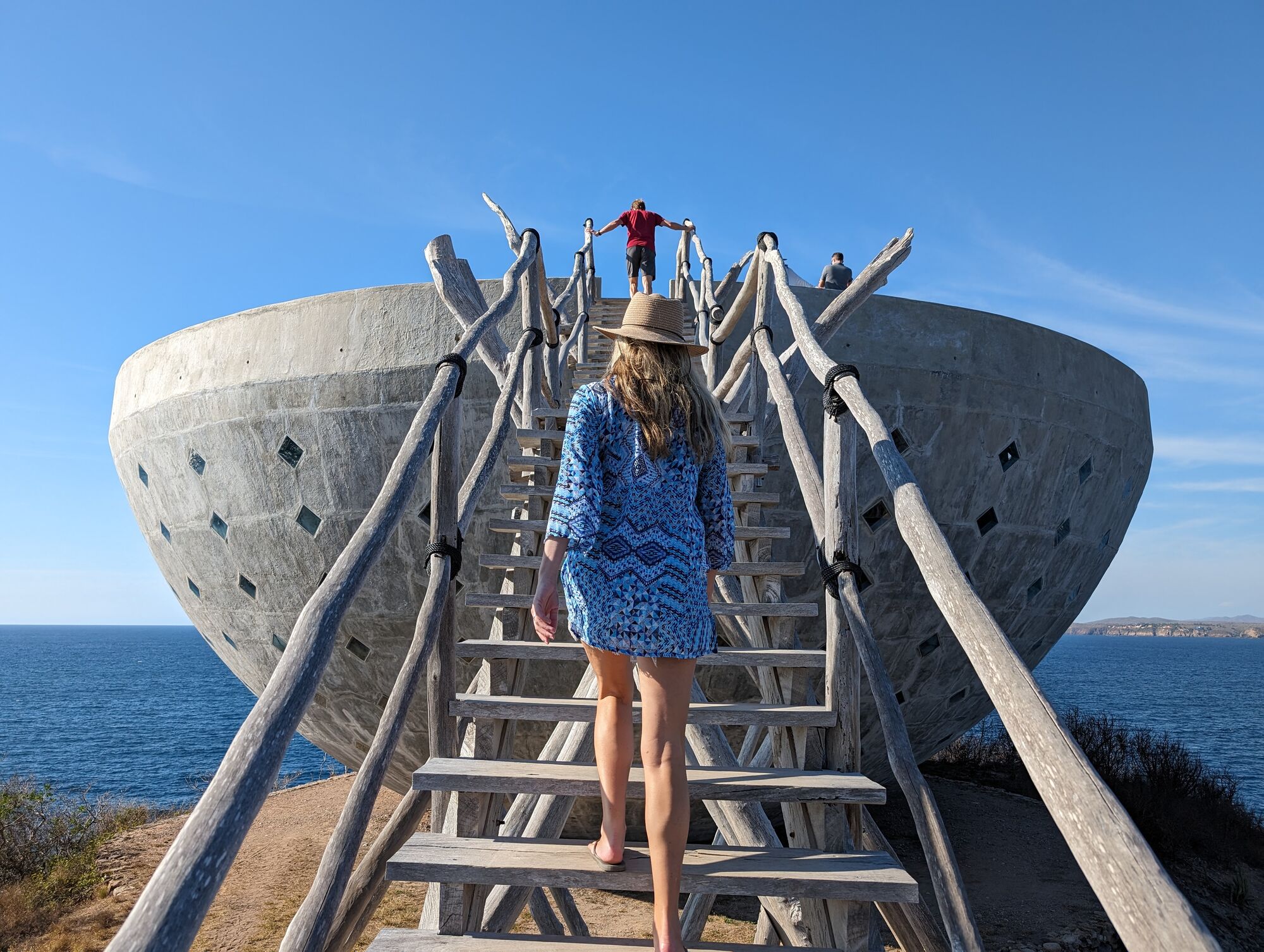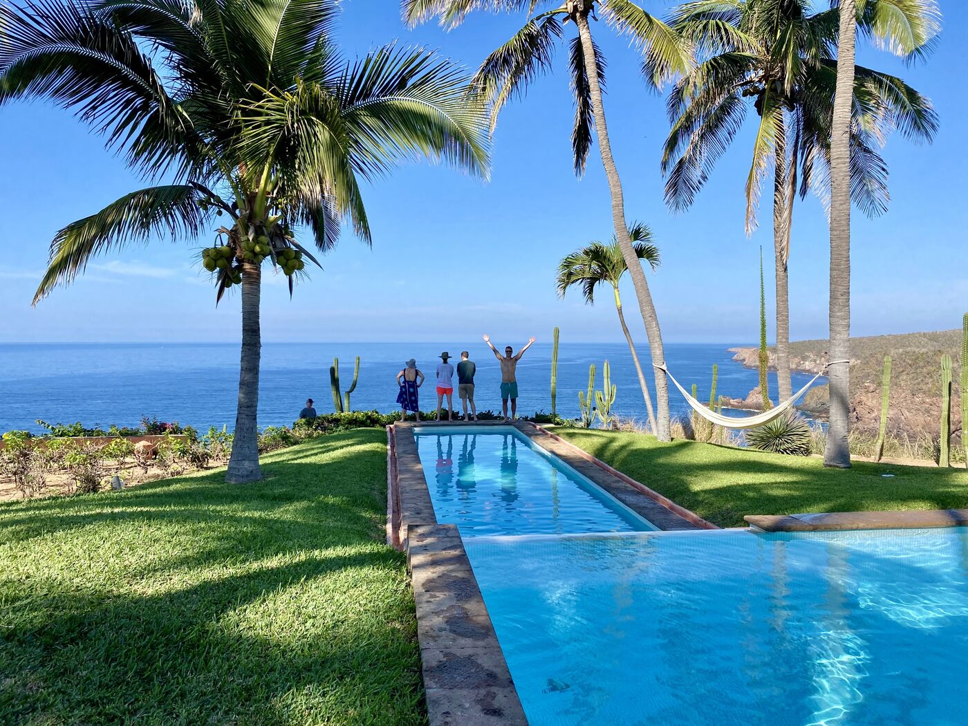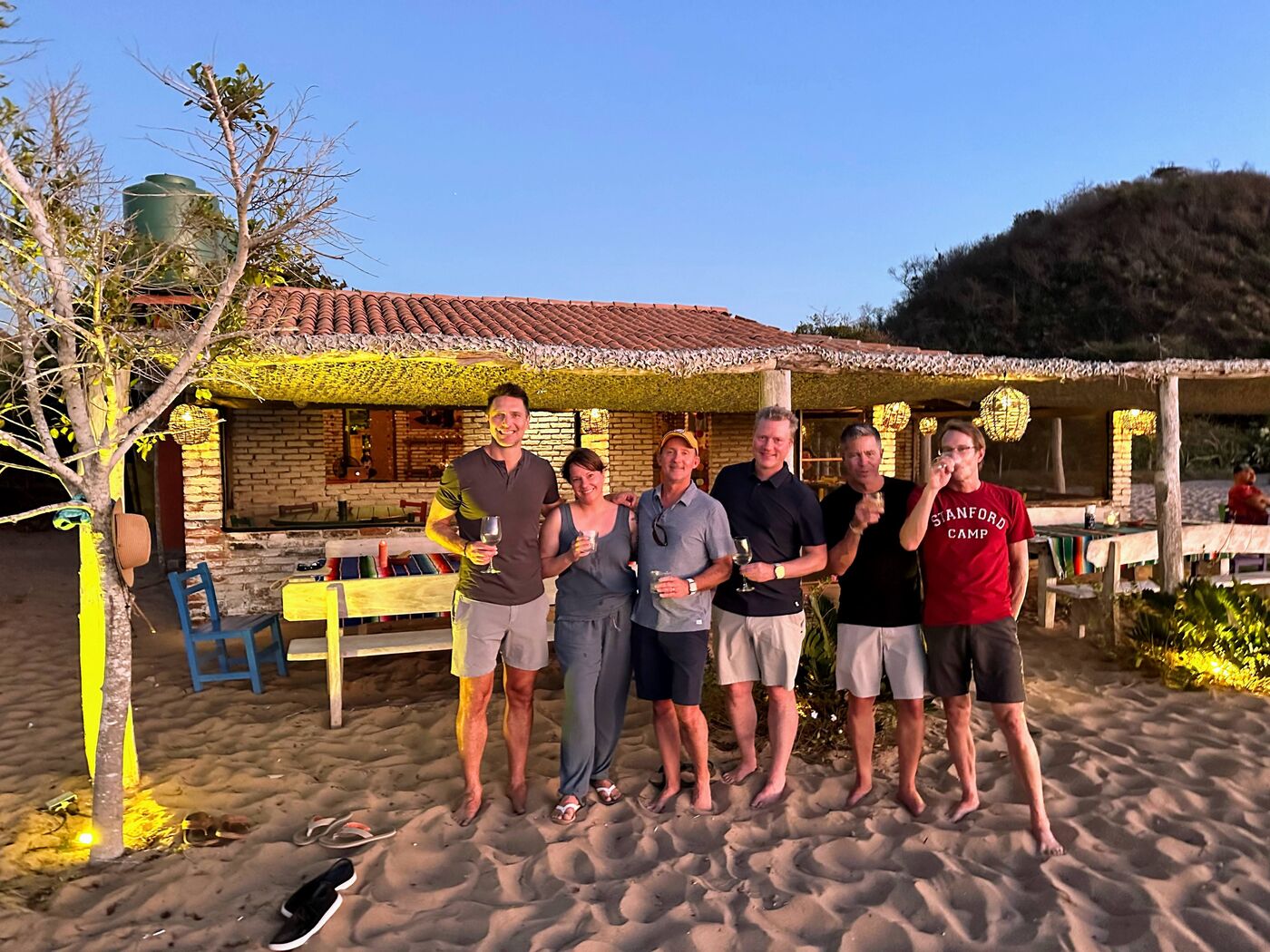 The place we stayed in was absolutely stunning. Truly an incredible spot.We arrived at around dusk, so couldn't quite see the property. But when it looks like this you know that you are somewhere truly special.With views and pools like this, it could be difficult to leave the property.Shannon arranged a series of meals at incredible spots around the area. We had this stunning beach club to ourselves.The most spectacular dinner of all was on Tod's birthday.One of the unexpected highlights was a sound healing session in this gigantic "copa" sculpture. The venue itself was truly remarkable.After the sound healing we headed to this little beach hut for yet another stunning meal. It had a view of the copa in the distance which was fantastic.Coming "home" was never tough when it looked like this.There were a couple of evenings where we had a dress up theme – in this case Barbie. Good fun and laughs resulted.Another of the activities was a boat day. Always one of Julie and my favorite things to do on vacation.Cooling off in the ocean after our boat day.There was a constant stream of pelicans flying past along the cliffs. In fact the home is called Pelicanos.