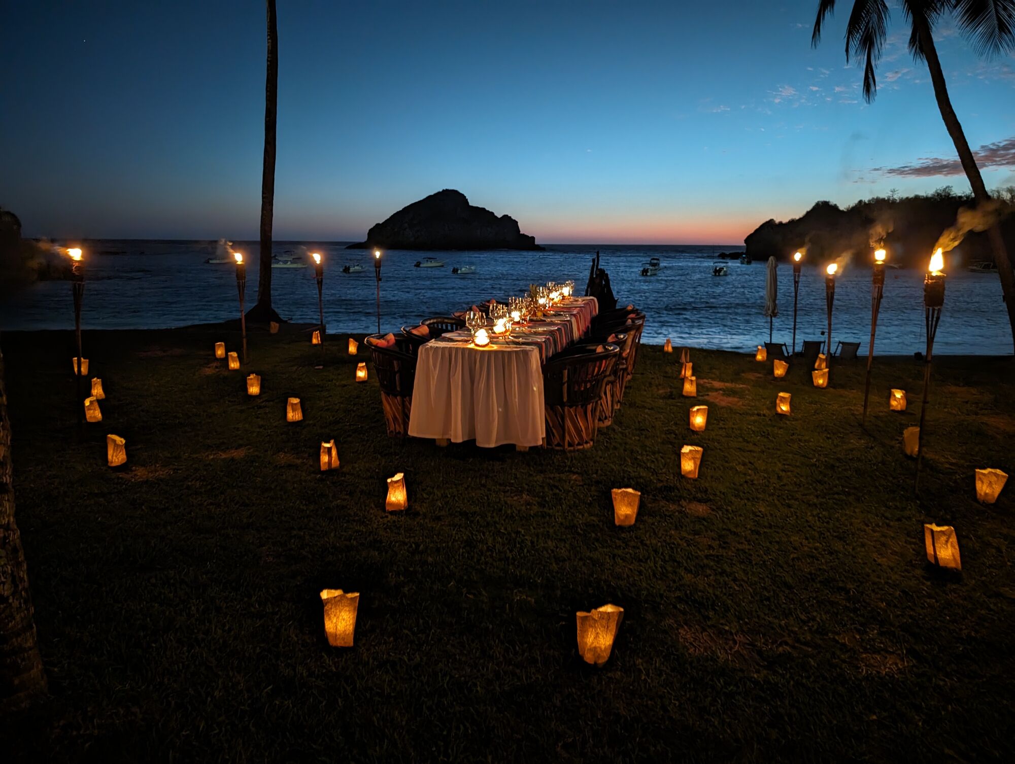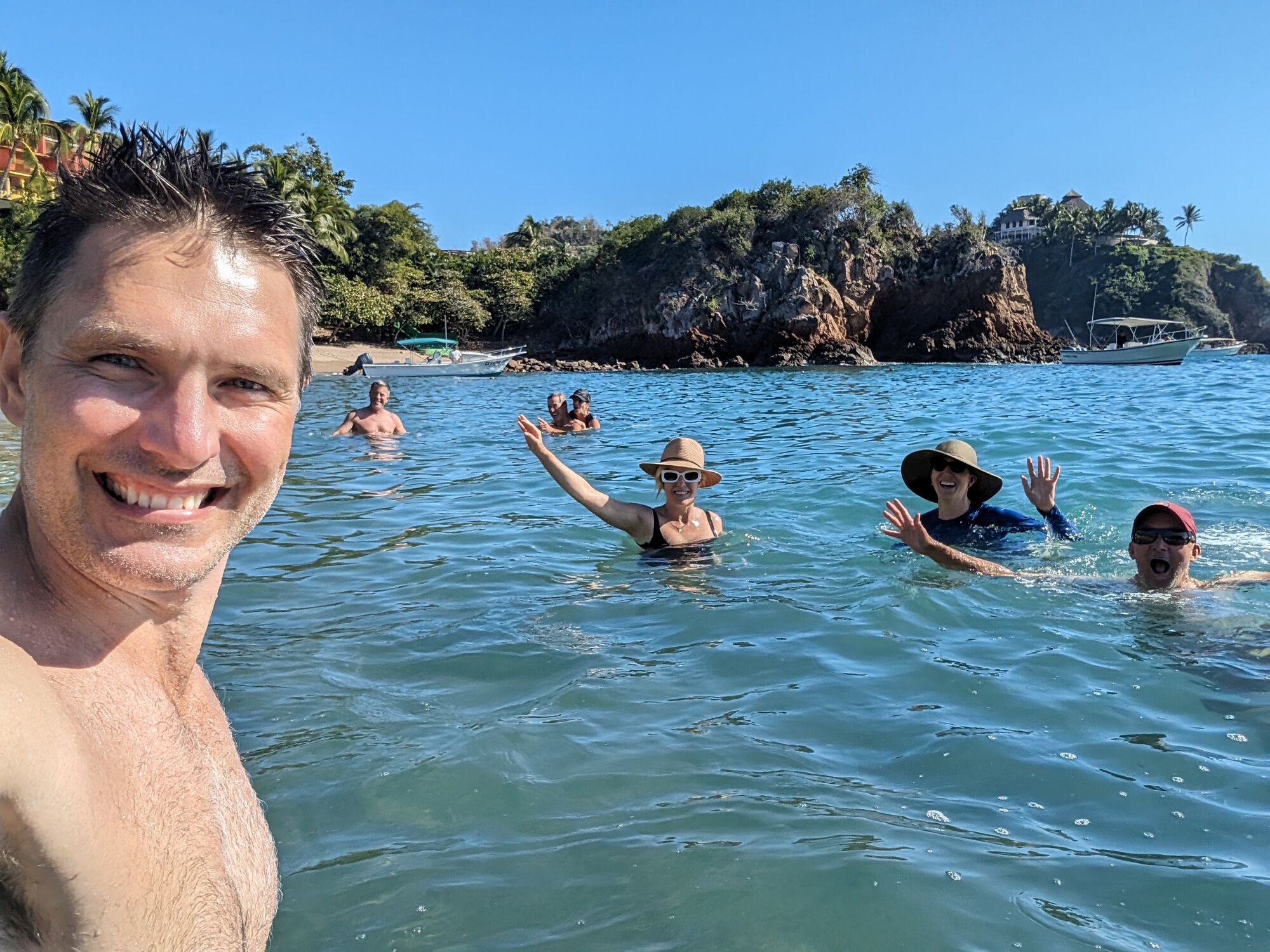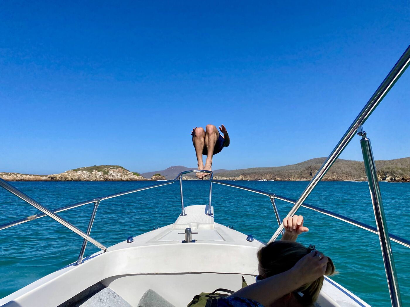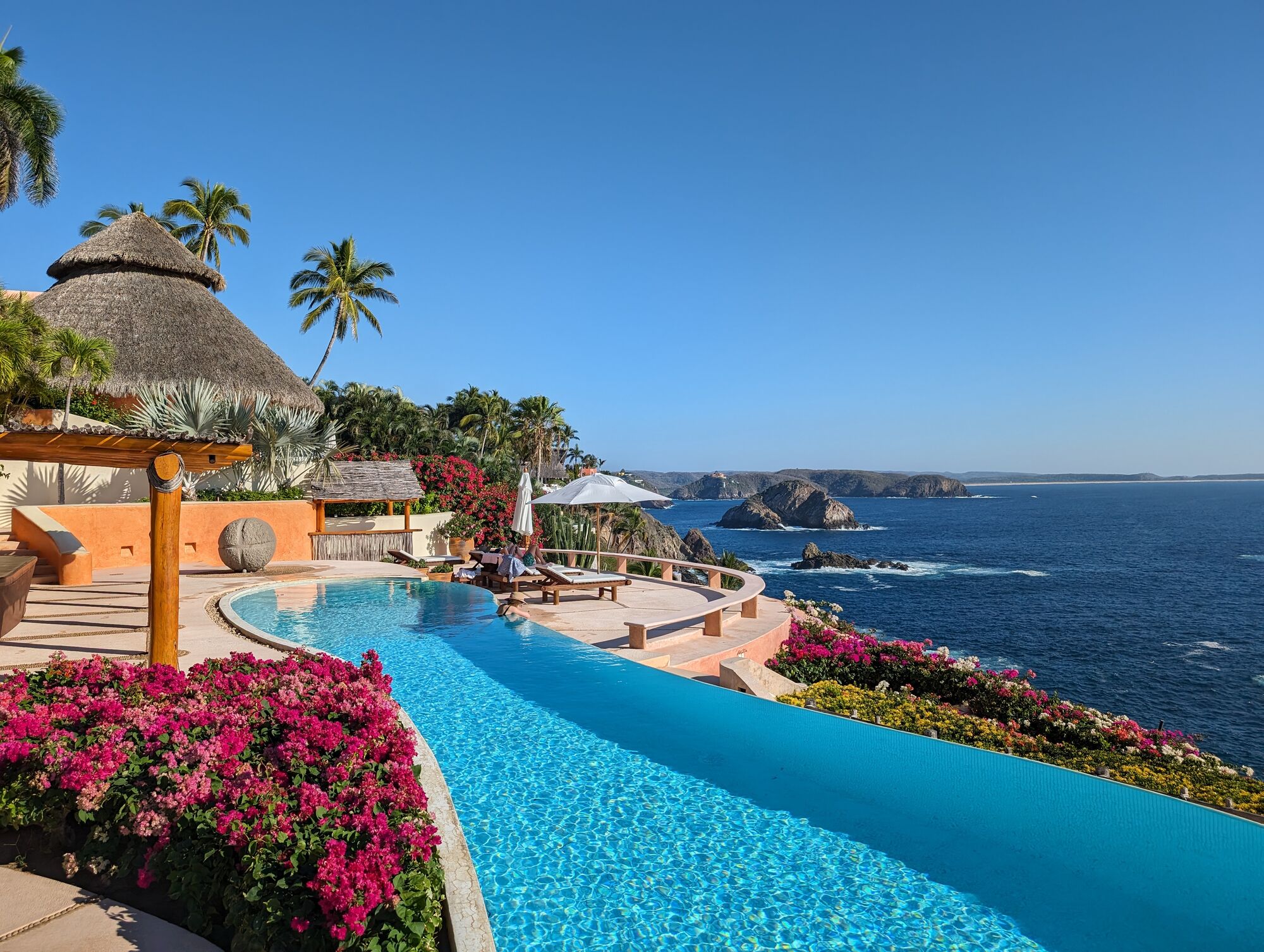 The place we stayed in was absolutely stunning. Truly an incredible spot.We arrived at around dusk, so couldn't quite see the property. But when it looks like this you know that you are somewhere truly special.With views and pools like this, it could be difficult to leave the property.Shannon arranged a series of meals at incredible spots around the area. We had this stunning beach club to ourselves.The most spectacular dinner of all was on Tod's birthday.One of the unexpected highlights was a sound healing session in this gigantic "copa" sculpture. The venue itself was truly remarkable.After the sound healing we headed to this little beach hut for yet another stunning meal. It had a view of the copa in the distance which was fantastic.Coming "home" was never tough when it looked like this.There were a couple of evenings where we had a dress up theme – in this case Barbie. Good fun and laughs resulted.Another of the activities was a boat day. Always one of Julie and my favorite things to do on vacation.Cooling off in the ocean after our boat day.There was a constant stream of pelicans flying past along the cliffs. In fact the home is called Pelicanos.