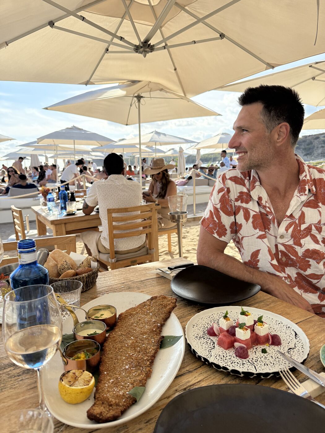 Most of our time was spent hanging out, having lazy lunches, and exploring the island.On the right here is the Fish Shack, a fantastic, rustic little restaurant right on the water.The cliffs near fish shack. This was on one of my morning runs along the coastline.Old town view.We popped into Lio for diner and a show. A good time overall!We also spent a bunch of time on the beach, as usual. This is certainly one of my favorite spots, Sa Trinxa. And of course we spent some evenings out, having a grand time. This trip we also checked out some of the day parties at beach clubs. This was Blue Marlin where the restaurant was excellent and the party was fantastic.Perhaps a sign of our age, but we quite liked the parties that had us in bed by 1am!