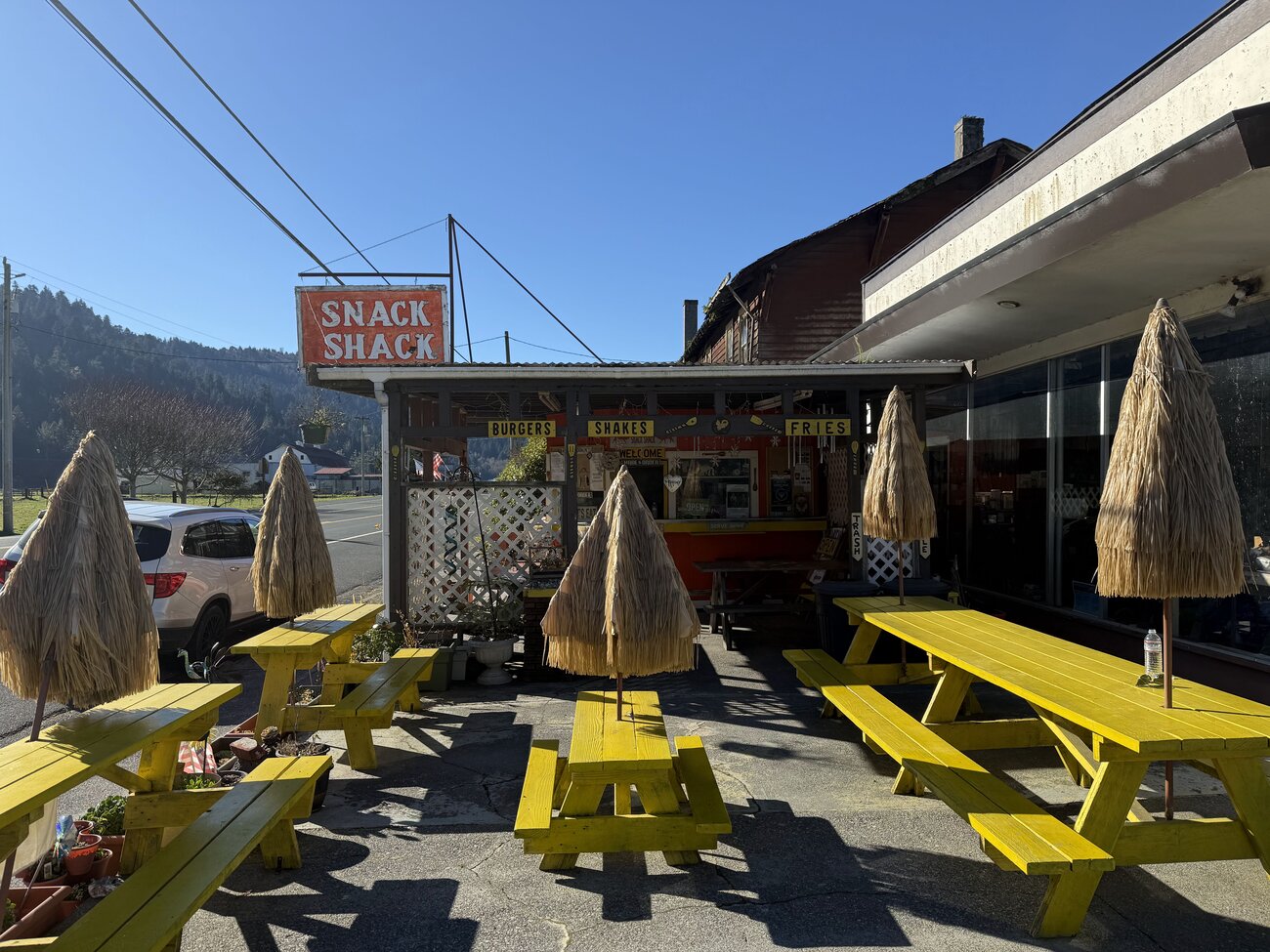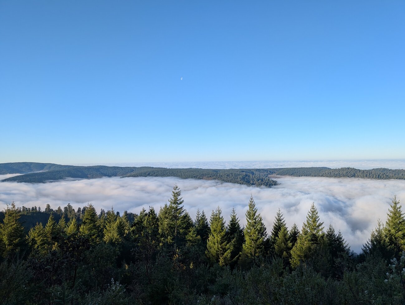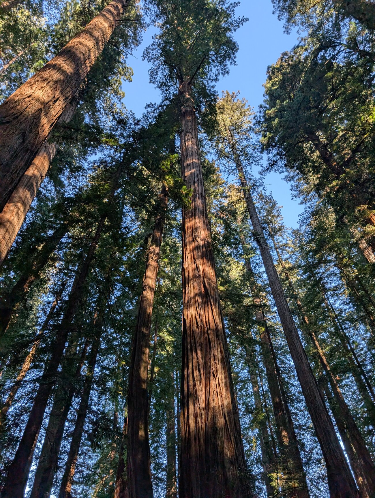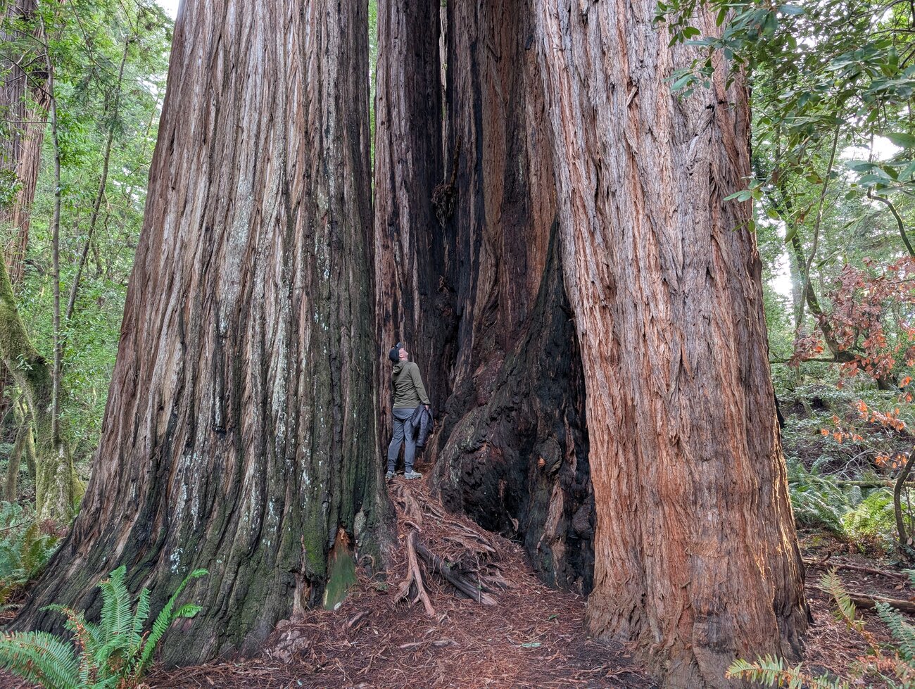 The forests were all beautiful. This snap on our last morning has become a regular laptop wallpaper.It's truly impossible to capture the scale of these trees. They are HUGE. We stayed in a tiny and shrinking town. One morning we ate at this spot and were immediately joined by and old guy who had lived there all his life. He told us tons of stories about the town and the area.While it was indeed sunny and we had no rain, it was absolutely freezing for us California boys.Another attempt at capturing the scale of the trees.This is on our first morning. We absolutely loved hiking among these monsters.And this was a memorable walk up a canyon with walls covered in ferns. Lots of leaping and balancing in attempts to keep my feet dry.