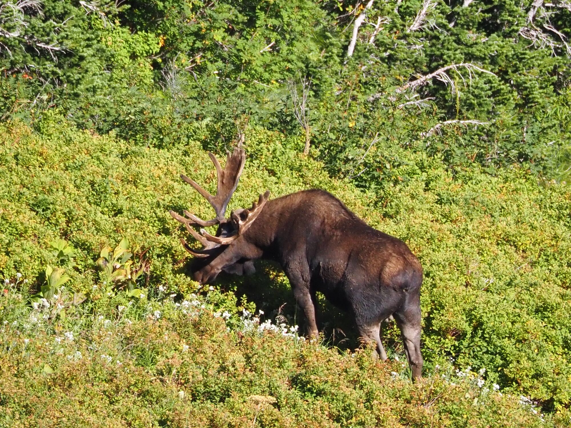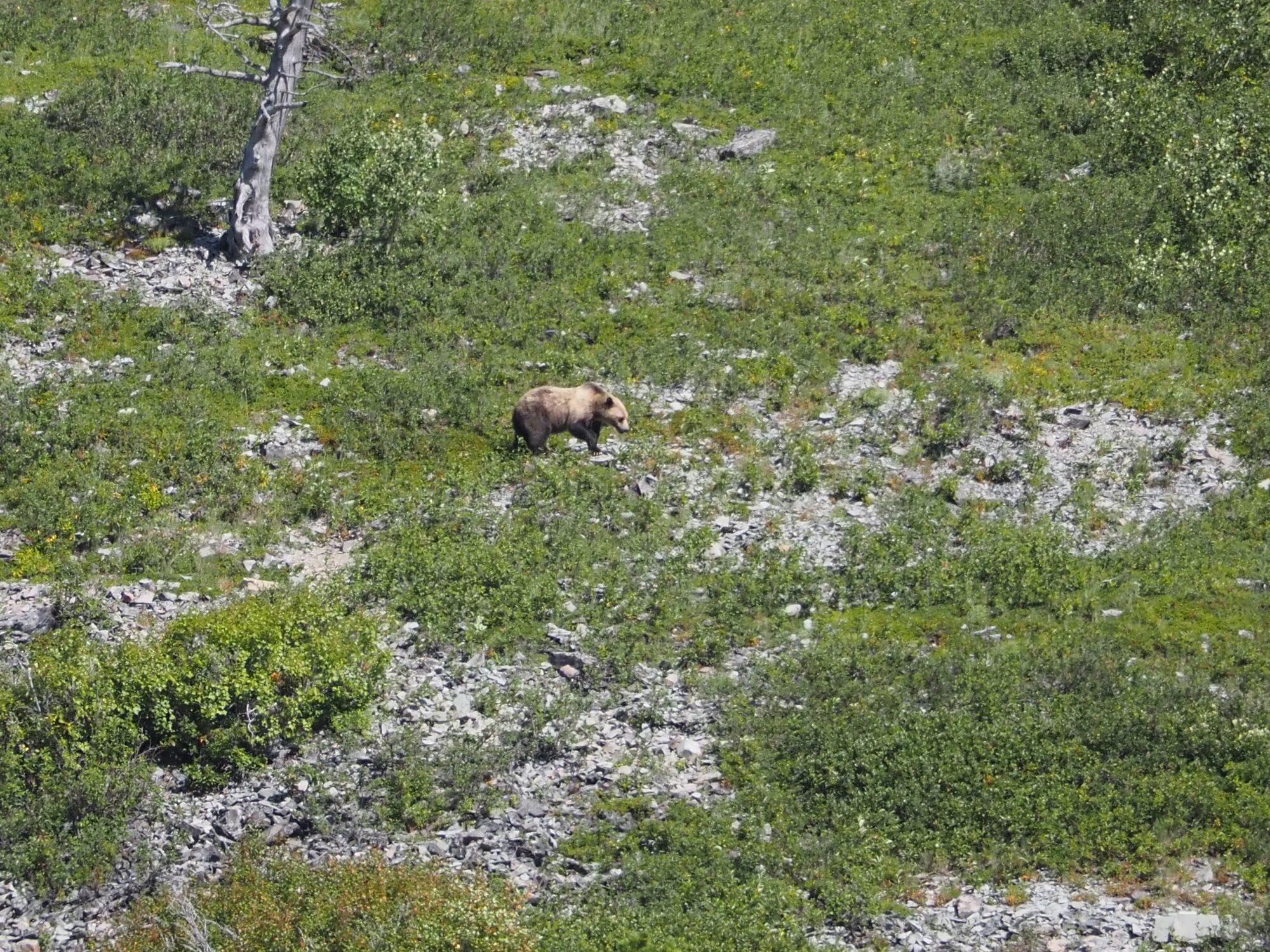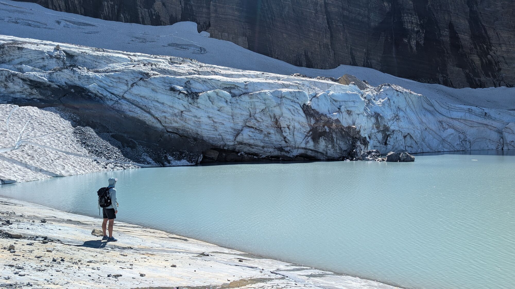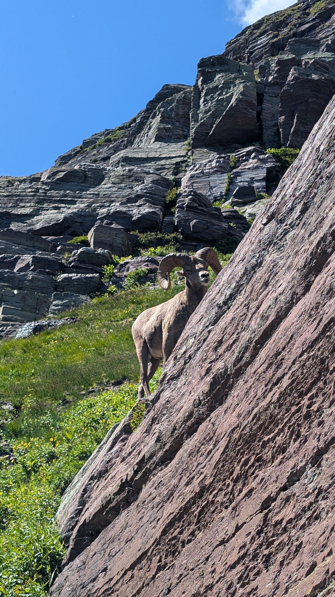 We stayed at the wonderful Many Glacier Hotel, and were super lucky that access to the area was restricted for construction. The hotel is stunning and right on the Swiftcurrent Lake (see the hotel on the far right)We lucked out and got a room with this stunning view.First thing in the morning we headed out for a hike. To shorten things, and to make it more interesting, we took a boat over the lake. In fact it was a boat over the Swiftcurrent, a walk, and then a boat across the next lake too.Almost immediately we saw a grizzly bear making it’s way along the hillside. This was the first either of us had ever seen, and also rounded out the trio (grizzly, black, polar) for the trip – very exciting!We then headed up the trail toward Grinnell Glacier. The views of Grinnell Lake and the mountains were magical all the way up.The first wildlife we saw was this stunning bighorn sheep.He was walking along the trail and totally unbothered by us waiting.We eventually topped out at Upper Grinnell Lake, which was gorgeous. Really cool to have all these big blocks of ice floating around.After a beer and some lunch, we started to make our way along the lake shore to check out the glacier.We walked all the way over to touch the glacier itself.On the way back down we came across this mountain goat, also not at all bothered by our presence.And then a moose! Fortuntely this was a fair distance from the trail.Sunset from our balconyAnd then we spotted a beaver cruising slowly past!Next morning I was up fairly early for a run.I went to Grinnell Lake, which we had been looking down on during our hike the previous day. I had the place all to myself.We rented a kayak and paddled all over the lake exploring.We finally got a shot of the kingfishers. At the start of this trip we didn’t even know there were kingfishers here. They’re very shy so we struggled to get photos.And then we also saw a beaver! He was quite brave when we just sat still.We drove the famous Going-to-the-sun road through the park. Very busy!That evening we saw this black bear chowing down on berries near the hotel. He was unconcerned by hikers.On the last morning before leaving I shot out the door towards Iceberg Lake. The lake is in this huge amphitheatre and the approach was stunning. The lake is really incredible. Situated at the base of these huge cliffs.And again, I had the entire place to myself.