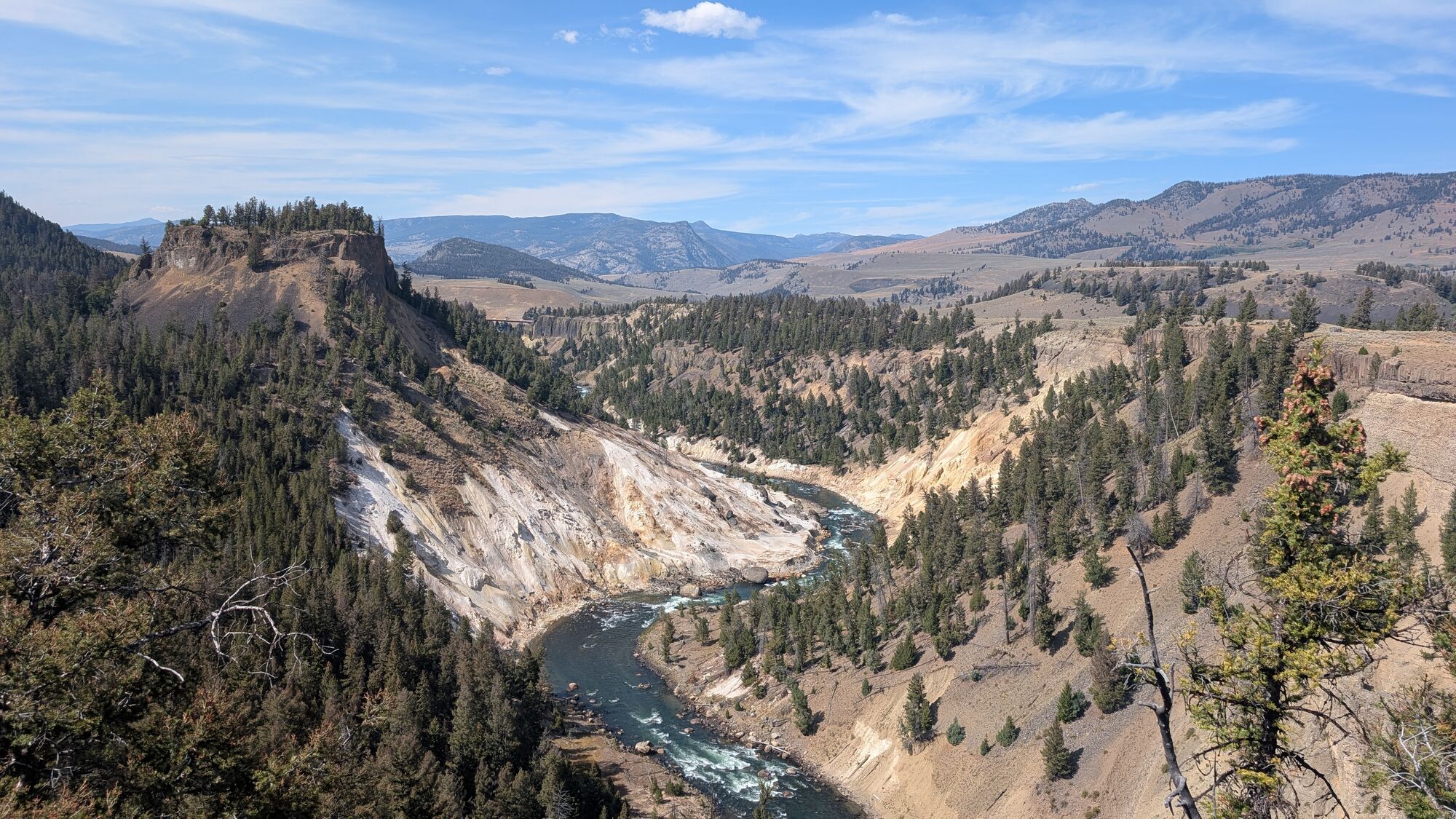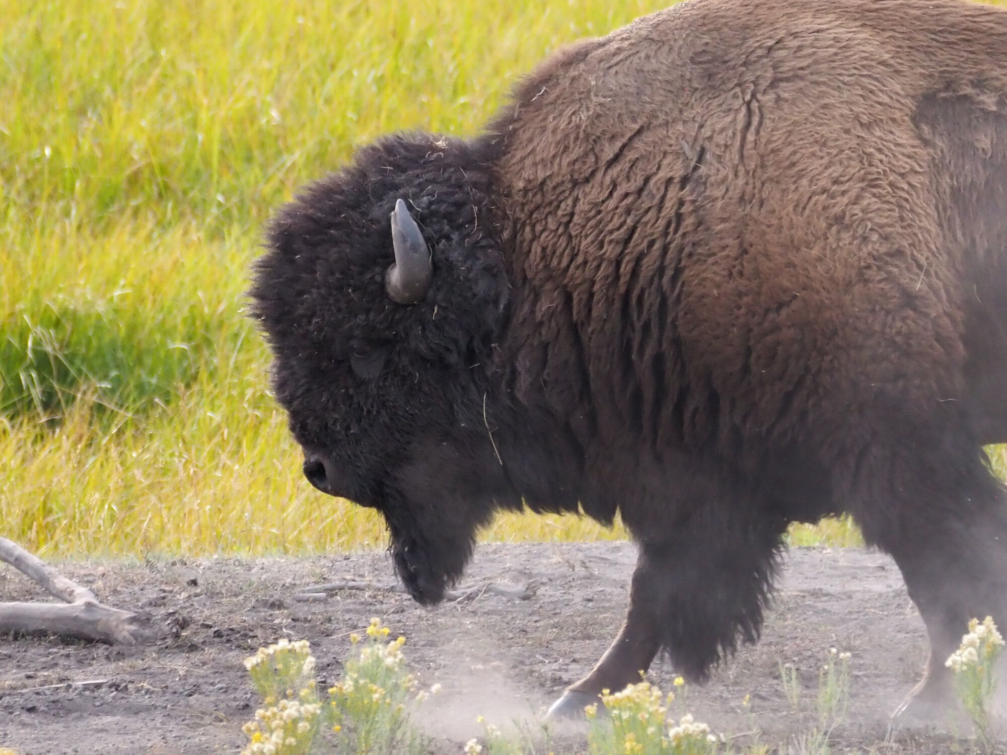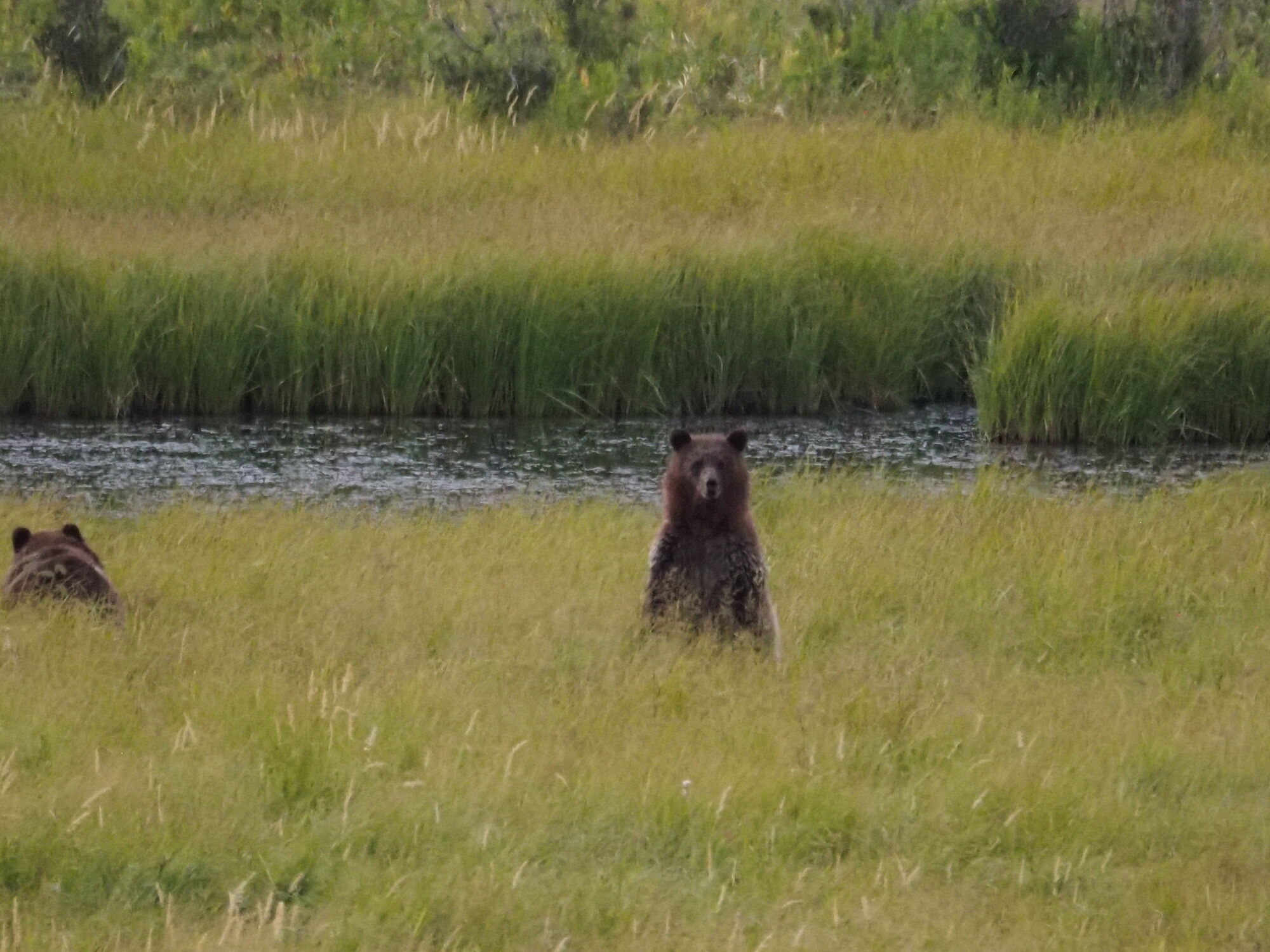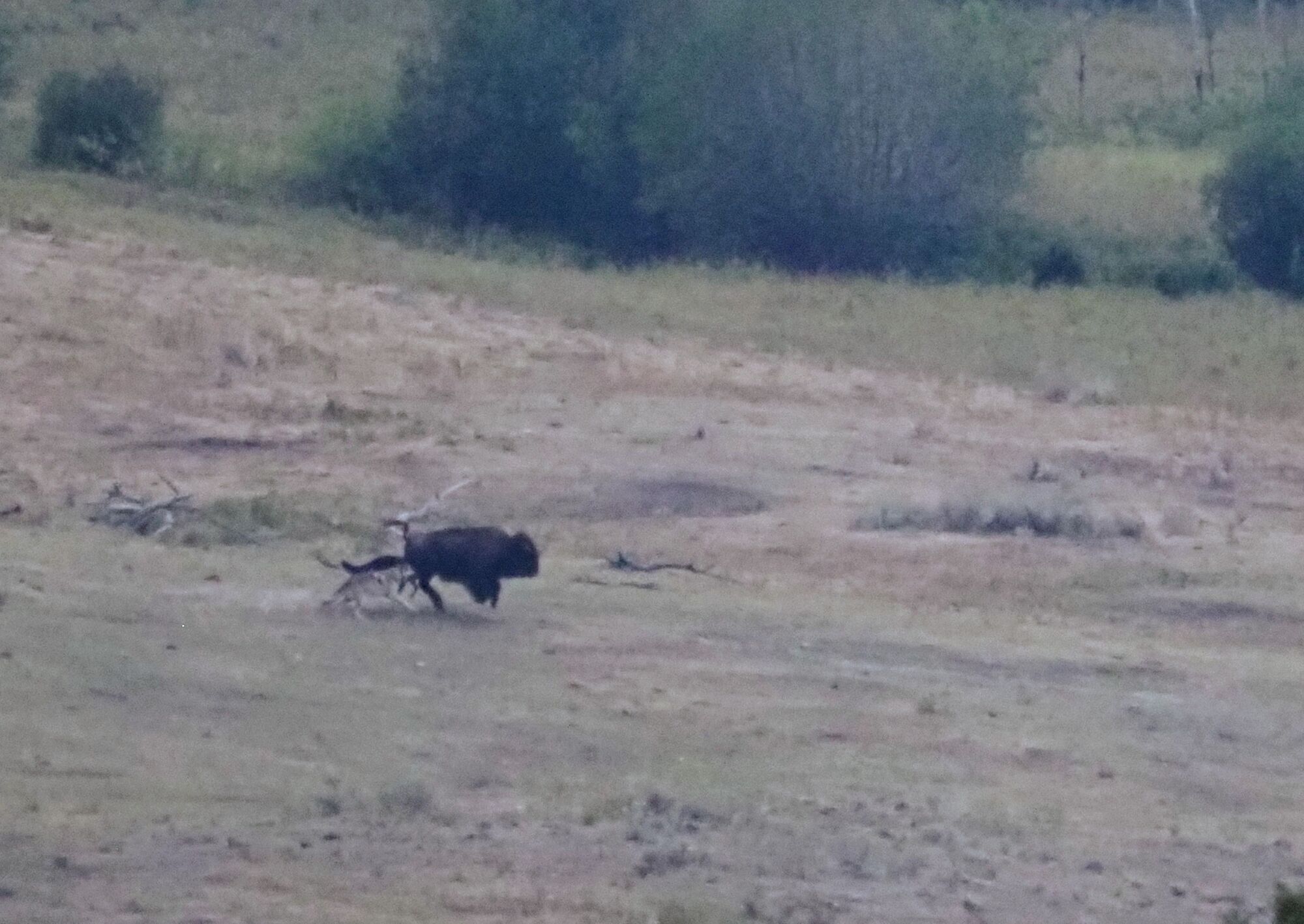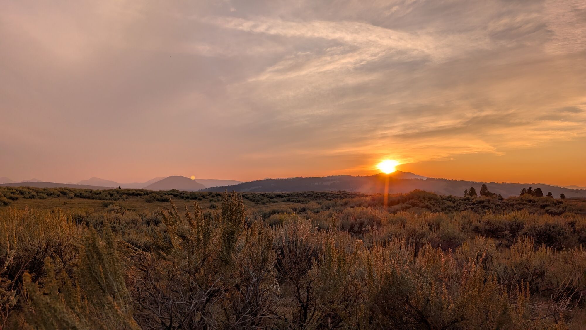 From Glacier we drove down the length of Montana to get to Yellowstone. It was a very interesting, and generally beautiful drive. We really liked these huge open planes.We arrived fairly late, but still popped into the park and set up our chairs for sundowners.Next morning it was back into the park.We focused on wildlife on day 1 by driving the Lamar Valley, known as the Serengeti of Yellowstone. Neither of us had seen a bison in the wild, so it was fun to get some really fantastic sightings of them.During our drive we’d seen a really nice spot, off of the main road. So we headed back there and set ourselves up for sundowners with a view.Right away this big guy turned up and he ended up spending most of the evening hanging out with us.But he dipped when these two grizzly bears turned up! They had a big drink of water from the river.And then headed back the way they had come. Turns out that they had killed a bison just over the hill from where we were hanging out and they were headed back that way.We were really hoping to see wolves, and couldn’t quite believe out eyes when this one popped out of the bushes and trotted up the hill. Eventually a bunch more of them emerged, but they were MILES away. We’d heard that a lot of the time if you see wolves at all, it is like this.A bit later the wolf turned up again going in the other direction.We later heard that it had gone to investigate the bison kill, and been summarily chased away by the grizzly bears.Once all the action quietened down the bison turned up again, from where who knows.Everyone left and we warmed up some takeout before heading back to the hotel.Day two was mostly quiet with admin and lunch in town before heading into the park in the late afternoon. We were chilling, watching the bison carcas and hoping when suddely we saw the wolves chasing a bison down the hill in the distance behind us!The bison was more than a match for two wolves, seen here giving on a good kick.We settled in at our favorite spot for sunset again. Again we could see the rest of the pack in the far distance.Day 3 was a rainy travel day. So we dedicated it to the other great thing about Yellowstone – the thermals. Way more interesting and beautiful than we had expected. We especially loved a long walk around Norris Basin.We saw tons and tons of hot springs, geysers, and steam vents. We actually did check out Old Faithful, and found it underwhelming indeed…More lovely bison on the way South.